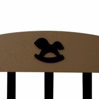 Кроватка декорирована фигуркой лошадки.