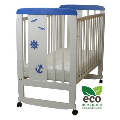 Кроватка декорирована деталями морской тематики.