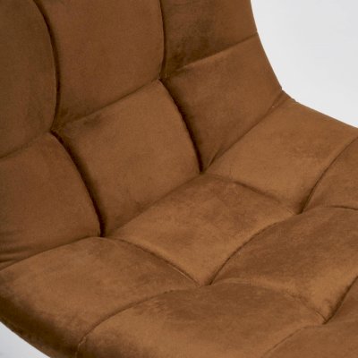 Стул на монолитном каркасе из многослойного гнутоклееного шпона толщиной 10 мм. Наполнение - комбинация пенополиуретанов различной плотности. Обивочный материал – велюр, с мягкой бархатистой текстурой. Квадратная отстрочка внутренней части сиденья и спинки. Ножки из металла с порошковым покрытием и пластиковыми подпятниками.