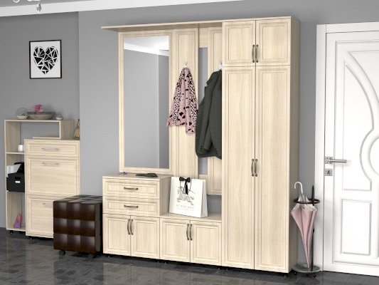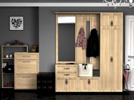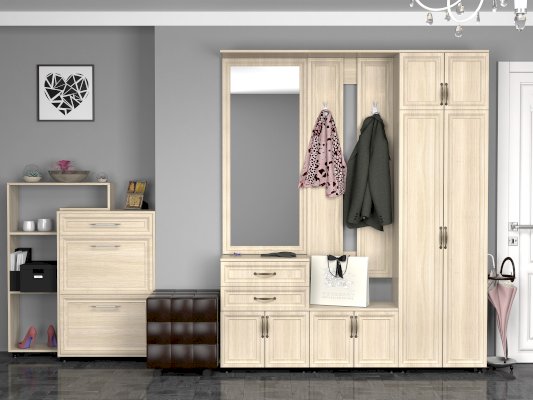 Вместительная тумба, за распашными дверками располагается отделение под обувь.