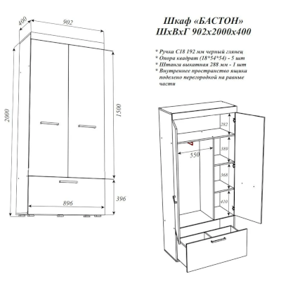 Шкаф Бастон (Эра) – товар доступен к покупке в интернет-магазине kovrovskiy-dommebeli.ru. Цена – 12 452 руб. без учета доставки. Стоимость дополнительных услуг и сроки получения мебели уточняйте у менеджера. Возможен безналичный расчет, оплата по карте на сайте.