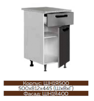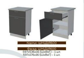 ШН1Д1Я600 Шкаф нижний с 1-м ящиком и 1-й дверью Белый глянец холодный/Графит софт